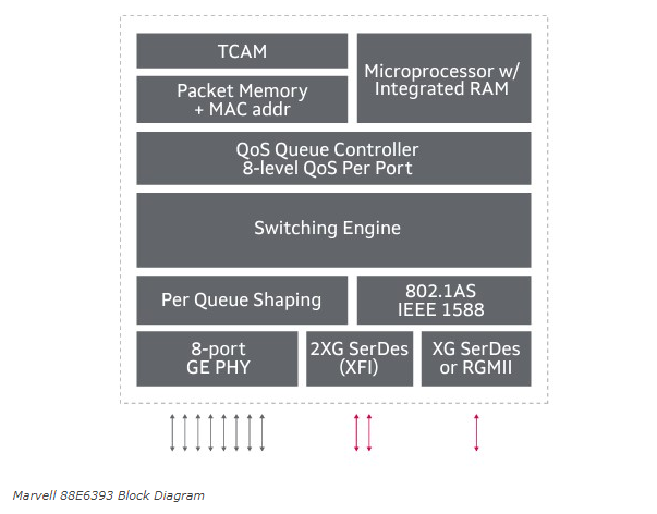 Marvell 88E6393 — це промисловий комутатор на платформі Link Street, який підтримує маршрутизацію L3.