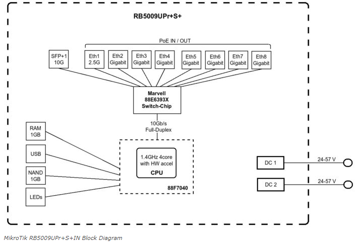 Компанія Mikrotik розпочала представлення своєї нової лінійки маршрутизаторів RB5009 з моделі RB5009UG+S+IN, та зовсім скоро оновила свій новий «крутий» роутер до RB5009UPr+S+IN. Також запропонували аналогічну зовнішню модель RB5009UPr+S+OUT. Новий MikroTik RB5009UPr+S+IN використовує платформу RB5009 і додає вхід і вихід PoE на всі свої порти.