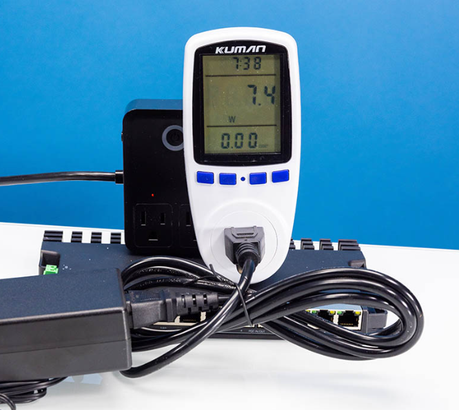 Що стосується енергоспоживання, ми побачили цифри в режимі очікування в діапазоні 7,4 Вт. Максимальна потужність для цього пристрою без живлення PoE і без підключених кабелів має становити приблизно 15 Вт.