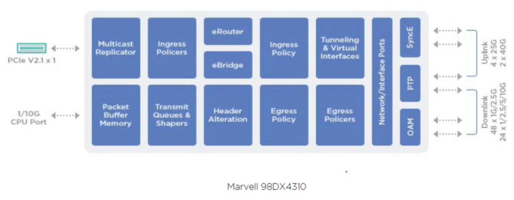 Ось блок-схема Marvell Prestera 98DX4310, яку ми знайшли: