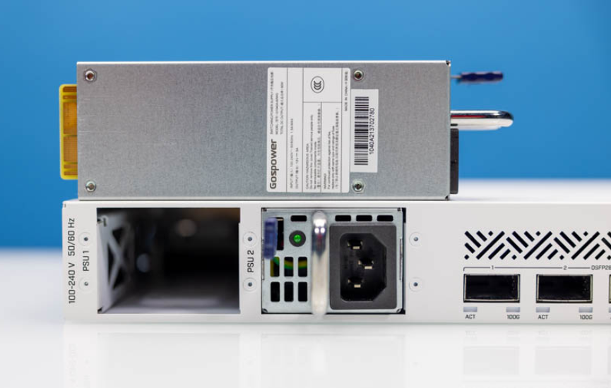 Ліворуч розташовані резервні блоки живлення потужністю 60 Вт. Ми поговоримо про енергоспоживання пізніше, але той факт, що вони становлять лише 60 Вт, повинен дати певне уявлення про те, як мало енергії споживає комутатор. Крім того, резервні змінні джерела живлення в комутаторі за таку ціну є функцією, яку інші постачальники часто пропускають у цьому ціновому діапазоні.