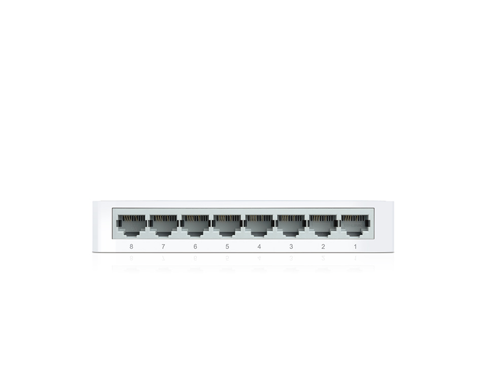 Некерований настільний комутатор TL-SF1008D від компанії Tp-Link має 8 портів 10(Ethernet)/100(Fast Ethernet) Mбіт/с з автовизначенням швидкості, що підтримують керування потоком 802.3x., що реалізовано для режимів повного та напівдуплексу. Ці порти мають два варіанти підключення - до концентратора (у режимі напівдуплексу) або до серверів (у режимі повного дуплексу). Збільшення продуктивності між серверами та робочими станціями (8 plug-and-play портів) робить комутатор ідеальним вибором для мереж малих робочих груп. Необхідність використання портів uplink чи кросованих кабелів виключається автоматичним визначенням портами полярності MDI/MDIX. Комутатор характеризується невеликою вартістю підключення на один порт, що дозволяє використовувати його безпосередньо для підключення комп'ютерів.
