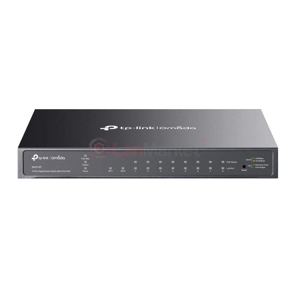 SG2210P – це 10-портовий гігабітний комутатор серії Omada, розроблений для малого та середнього бізнесу, що потребує надійного та гнучкого мережевого рішення з підтримкою PoE+. Оснащений 8 гігабітними портами PoE+ та 2 слотами SFP, він забезпечує високу продуктивність, ефективне управління мережею та стабільне підключення для різних пристроїв, таких як точки доступу, IP-камери та VoIP-телефони.