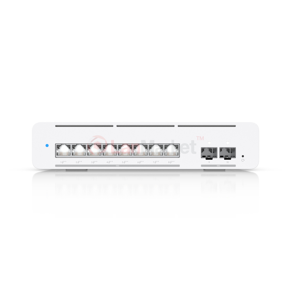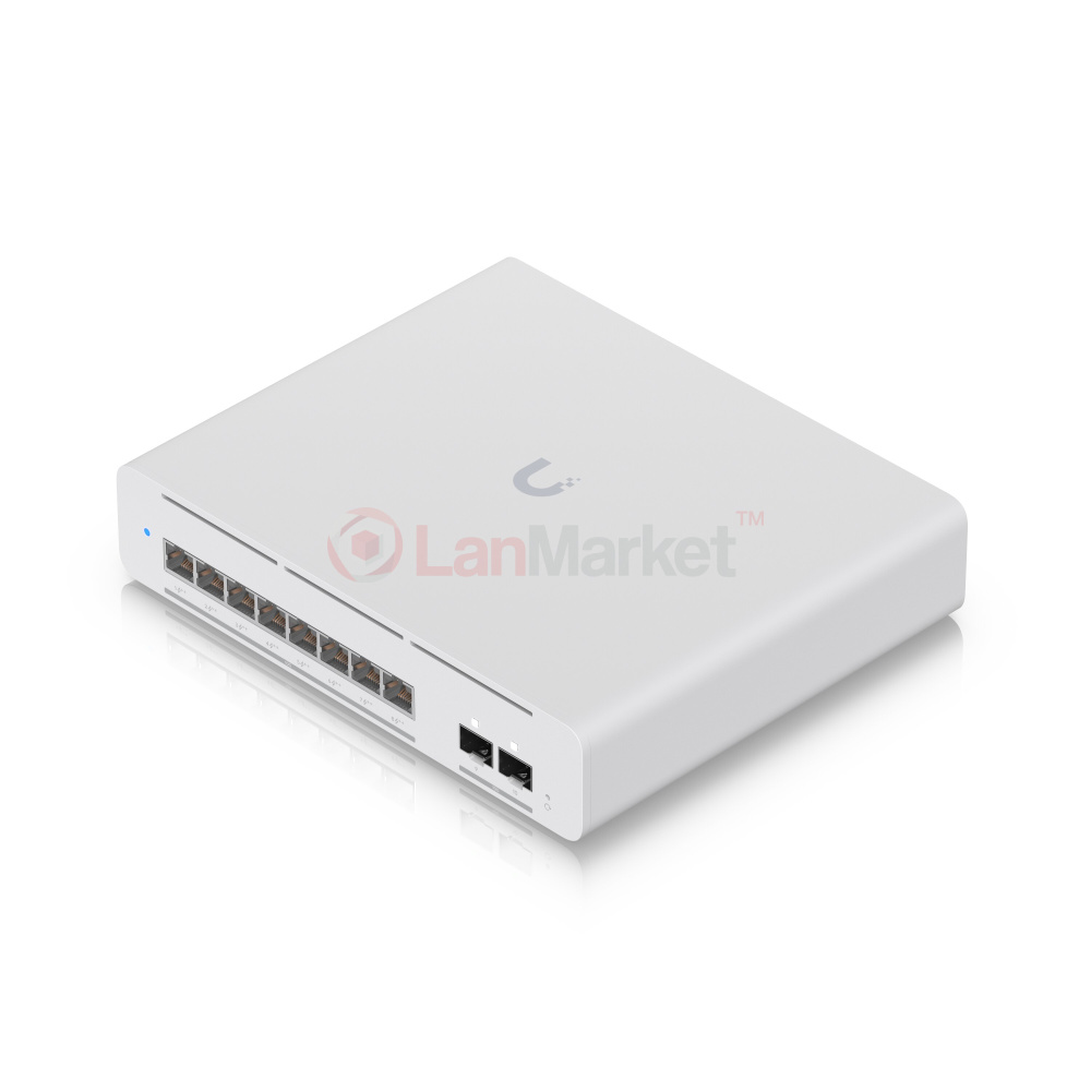Комутатор оснащений 8 портами 10 GbE RJ45 з підтримкою PoE++ (до 60 Вт на порт) та 2 портами 10G SFP+, що дозволяє будувати швидкісні оптичні або комбіновані підключення. Загальний бюджет PoE становить 155 Вт, що дає змогу живити потужні пристрої, такі як точки доступу, камери або інші мережеві рішення.
