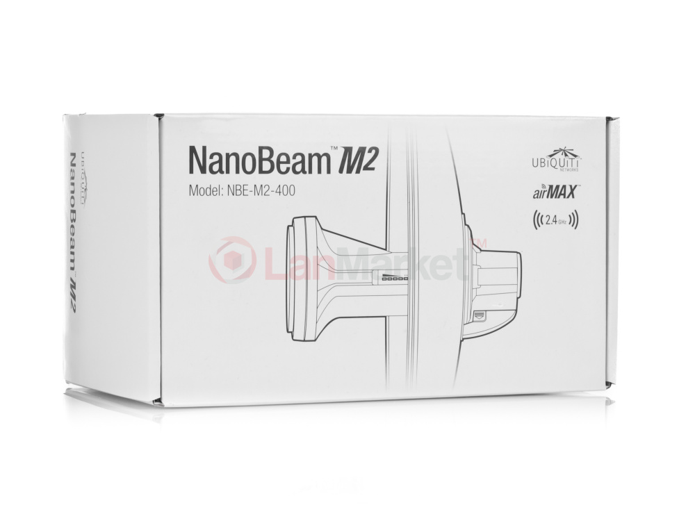 Одним из устройств этой серии, является Ubiquiti NanoBeam M2, модель NBE-M2-400. Которое, как понятно из названия, работает в частотном диапазоне 2GHz и имеет встроенную антенну с повышенным коэффициентом усиления, равным 18dBi, и специальный корпус в виде отражателя c диаметром 400мм. Тем самым, позволяя устройству, создавать узконаправленный луч, с шириной в 20⁰ по вертикали и горизонтали. Устройство поддерживает все самые современные протоколы беспроводной связи IEEE802.11 b/g/n, а так же проприетарный протокол Ubiquiti AirMAX и множество прогрессивных технологий, позволяющих создавать качественные беспроводные соединения, с минимальными задержками и высокой пропускной способностью.