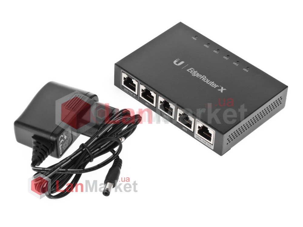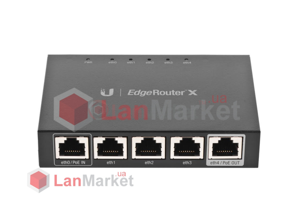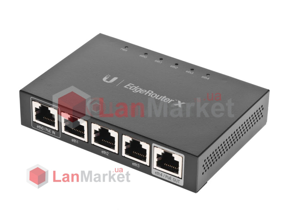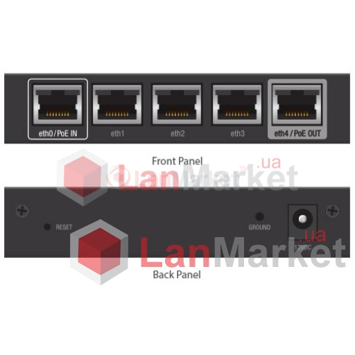 В отличие от старшей модели EdgeRouter X SFP, младшая ER-X имеет только 1 порт с поддержкой PoE Out 24V (PoE Passthrough). При этом первый порт имеет функцию PoE In, что позволяет запитать устройство удаленно через Passive PoE. Учитывая ограничение в 12 Вт на порт, на практике, это позволяет запитать каскадом до 3-х роутеров EdgeRouter X от одного источника питания. Также с порта eth4/PoE OUT можно запитать практически любое из устройств airMAX и/или UniFi (NanoBeam NBE-M5-16, UniFi AP AC, UniFi Video Camera PRO, Rocket ac и т.д.).